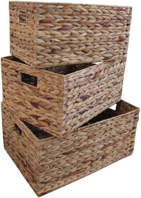 Decorasian Panier De Rangement Rectangulaire En Jacinthe Deau Naturel M L 2er Set Paniers Paniers Pour Etageres