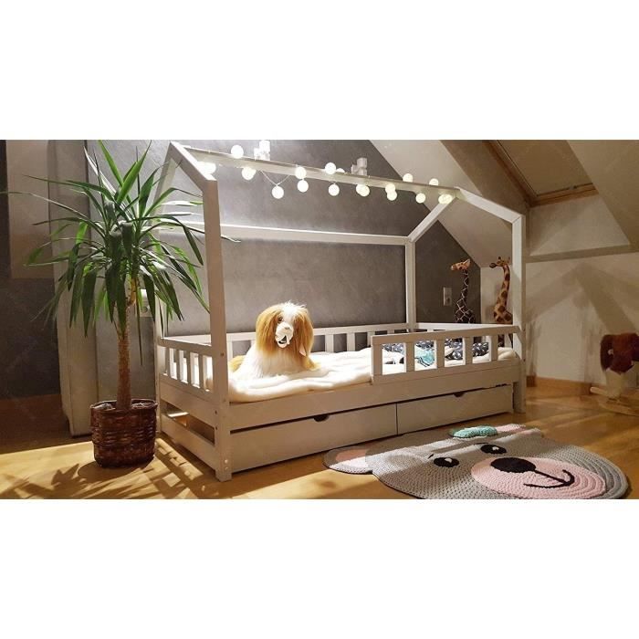 Nous avons le lit enfant que vous désirez, selon votre budget et les dimensions que vous recherchez Si vous désirez commander un lit enfant, vous allez sans aucun doute aimer avoir le choix des modèles pour une recherche plus rapide, n'hésitez pas à filtrer les résultats en fonction des dimensions de couchage souhaitées et de la teinte. Lit cabane en pin massif pour enfant Les montants de lit (60 x 40 mm) et la structure du toit sont en pin massif et peints en blanc Comme celuici est vissé sur les bandes de support du cadre, il existe également une distance par rapport au sol, ce qui permet à l'air de circuler. Ce lit pour enfant sera le choix idéal pour une chambre à coucher pour garçon C’est la transition parfaite d’un lit pour toutpetit à un lit simple Convient aux garçons et aux filles âgés de 2 à 12 ans Ce lit voiture pour enfants est disponible en 4 couleurs extérieures rouge, blanc, noir et bleu.