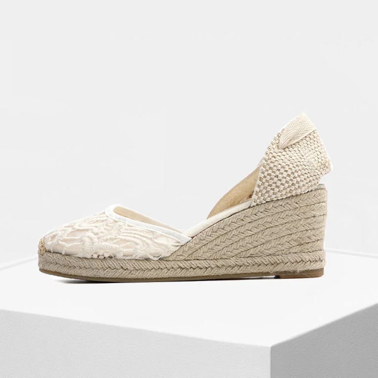 Espadrilles A Talon De 65mm Hauteur Sandales Compensees Pour Femme Tige Compensee En Dentelle Douce Espadrilles Aliexpress