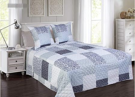 Generique Couvre Lit Boutis Dessin Imprime 230x250cm Avec Taies 65x65cm Mmsc0014 Bleu Amazon Fr Cuisine Maison