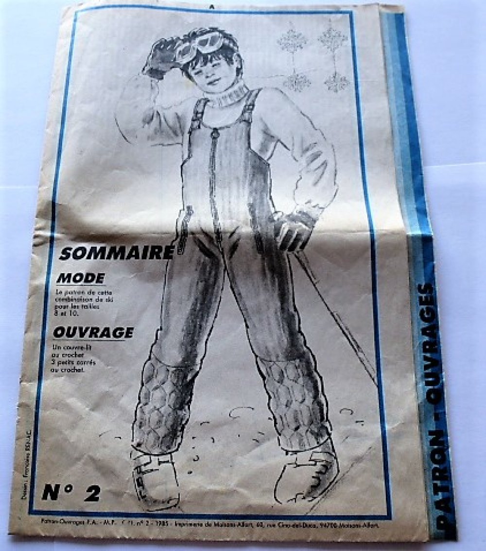 Feuillet Patron Ancien 2 En 1 Pour Combinaison Salopette Ski Enfants Les 8 10 Ans Et Dessus De Lit Crochet De Mode Travaux Un Grand Marche