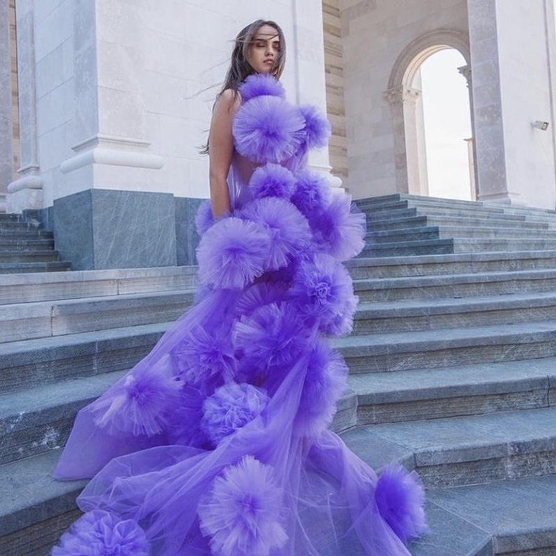 Robe De Soiree Tulle Parme Clair Pour Femme Enceinte A Dos Dentelle Persun Fr