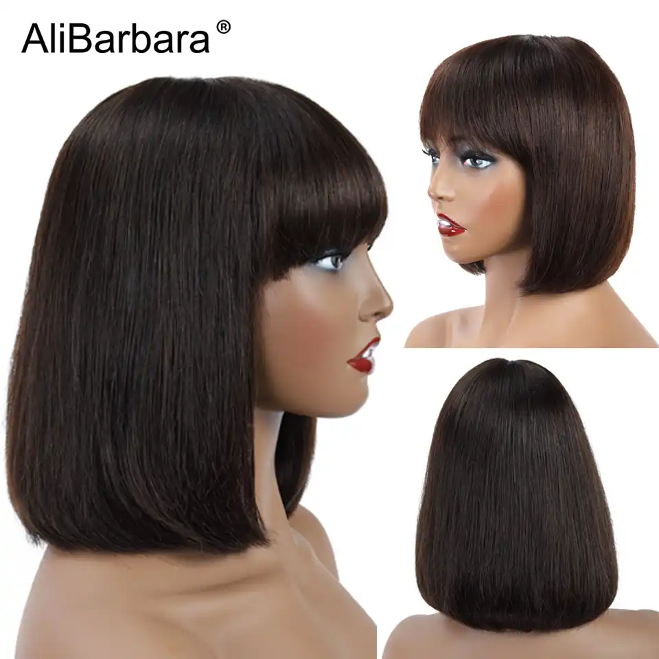 Perruque Bob Bresilienne Avec Frange Perruques Cheveux Naturels Lisses Courtes Brun Clair Brun Fonce 2 4 Pour Femmes Africaines Aliexpress