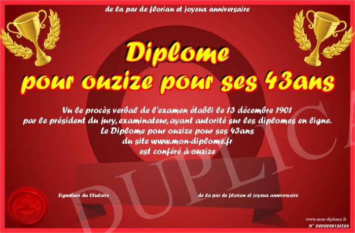 Diplome Pour Ouzize Pour Ses 43ans