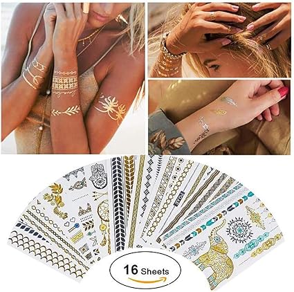 19 9 Magasin Chinois 16 Feuilles De Tatouage Impermeable Metallique Tatouage Temporaire Or Argent Autocollant Tatouage Pour Femmes Adolescentes Filles Body Art Amazon Fr Sports Et Loisirs