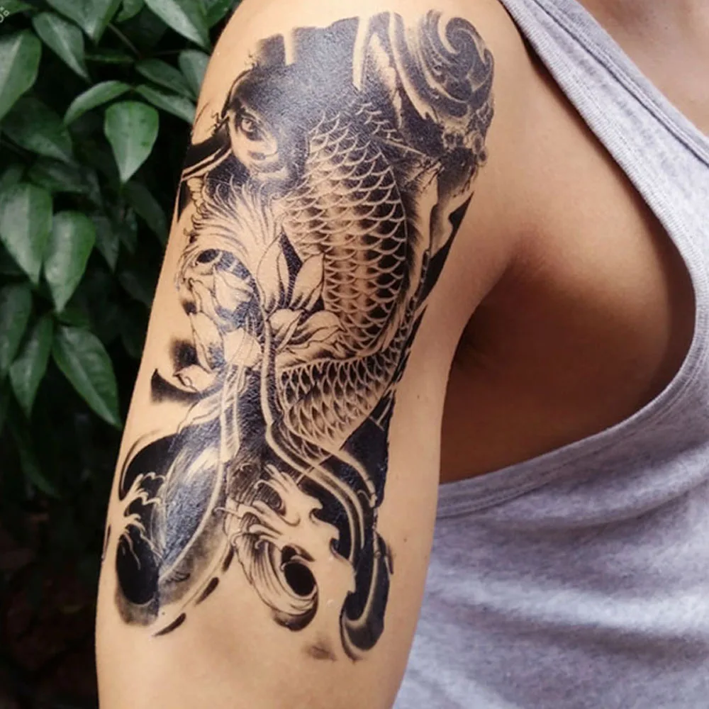 Yeeech Temporaire Tatouages Autocollant Pour Hommes Grand Faux Carpe Poissons Lotus Noir Conceptions Bras Jambe Arriere Body Art Etanche Longue Durable Aliexpress