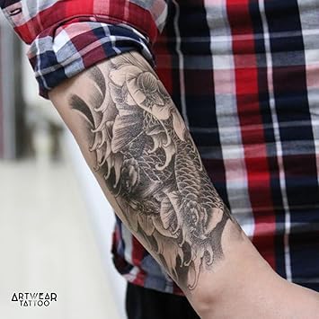Tatouage Temporaire Carp Lotus Artwear Tattoo Koi Carp Flower B0057 M Amazon Fr Jeux Et Jouets