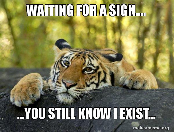 Waiting For A Sign You Still Know I Exist Confession Tiger Make A Meme