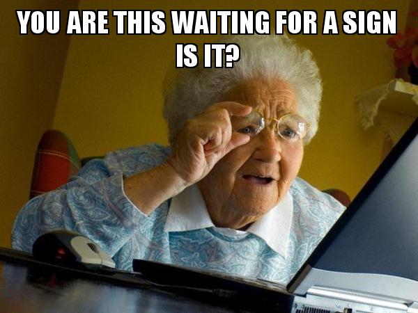 You Are This Waiting For A Sign Is It Internet Grandma Make A Meme