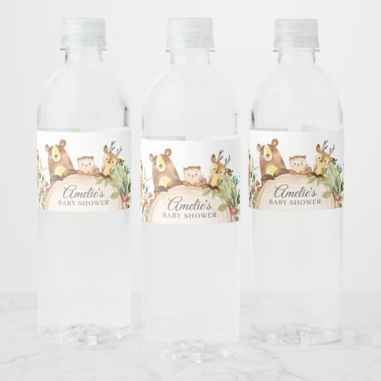 Etiquette Pour Bouteilles D Eau Animaux De Foret Baby Shower De Verdure Zazzle Fr