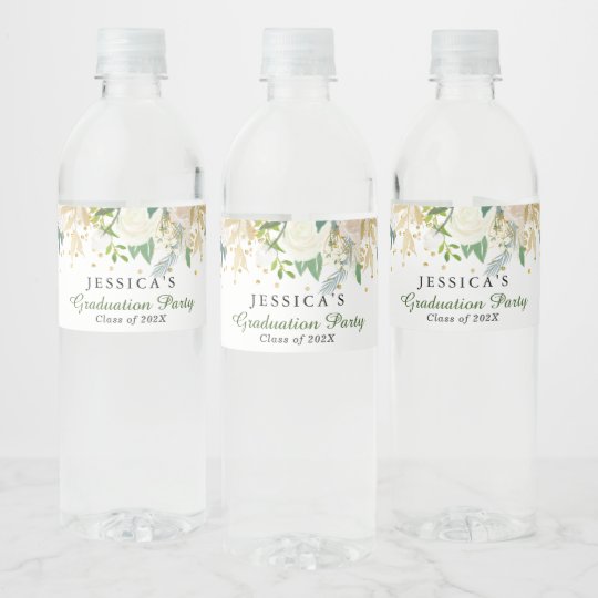 Etiquette Pour Bouteilles D Eau Parti De La Graduation Moderne Florale En Ivoire Zazzle Fr