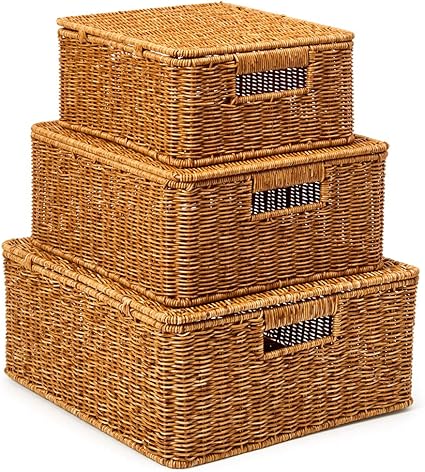Lot De 3 Panier De Rangement En Osier Boite De Rangement Organiseur Avec Poignees Brun Achat Vente Panier A Linge Lot De 3 Panier De Rangement Cdiscount
