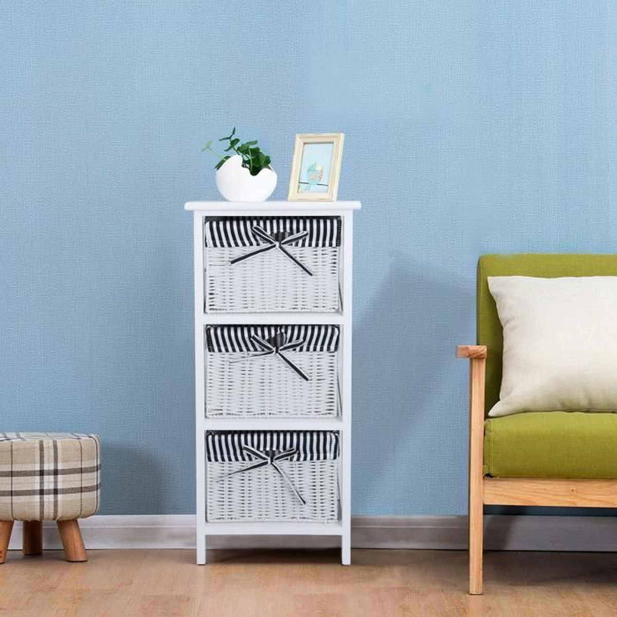Votre pièce avec notre chiffonnier en bois avec ses 3 spacieux paniers en osierParfait pour ranger tous vos objets allant des produits de. Vos besoins de rangement et d’organisation avec une touche d’unicité. Panier de rangement en osier est dans votre panier !.