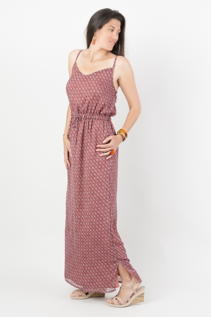 Robe Femme Longue En Voile Aerien Imprime Gemo