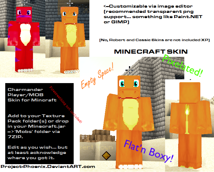 Minecraft Charmander Mob Player Skin By Phoenixacx On Deviantart