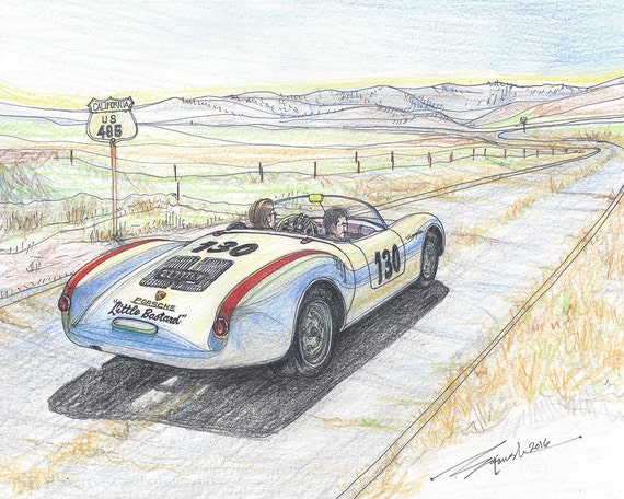 Porsche 550 Spyder James Dean Ursula Andress 1955 Original Drawing By Benjamin Freudenthal Selection Rs