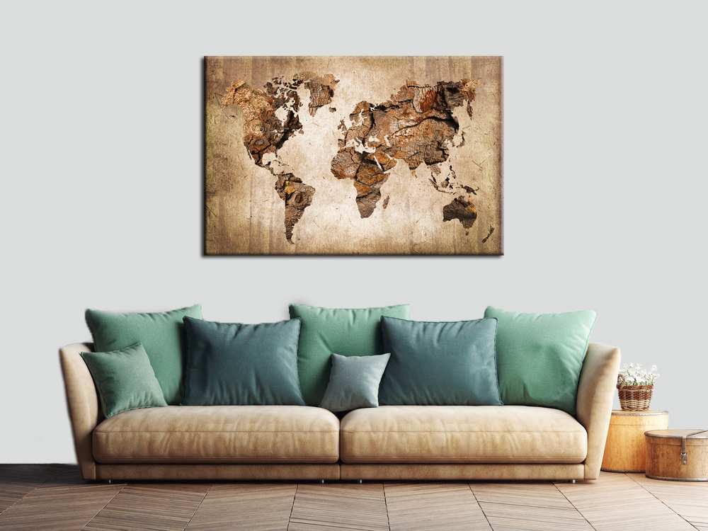 Tableau Toile Planisphere Fond Brun Photos Imprimees Pier Import