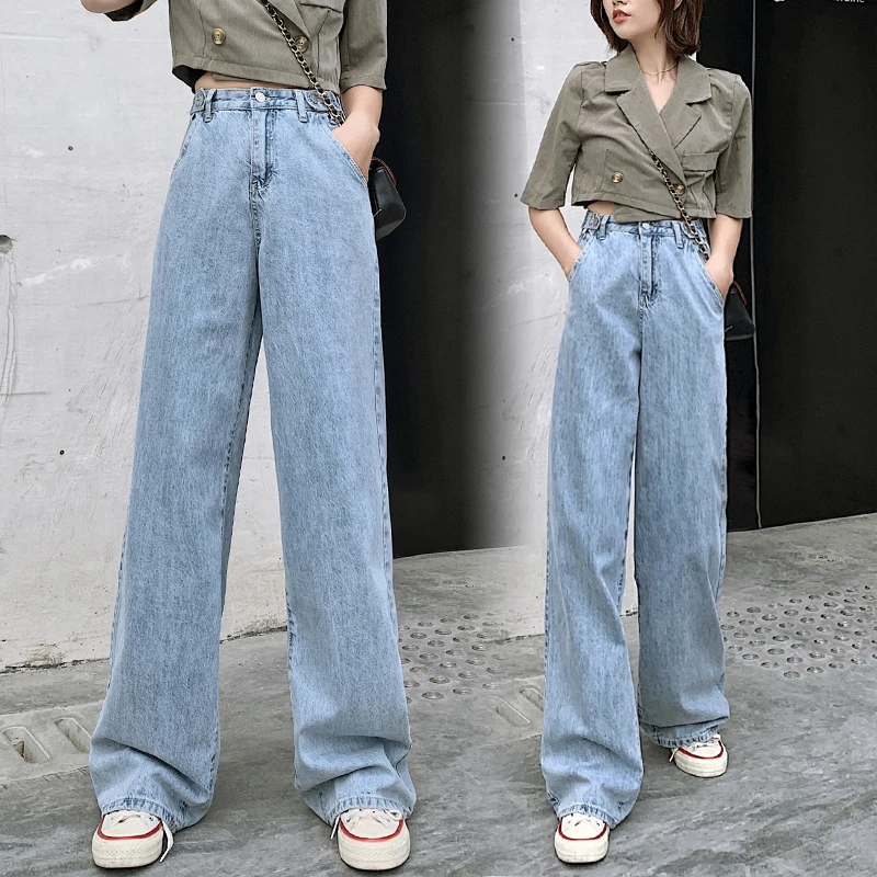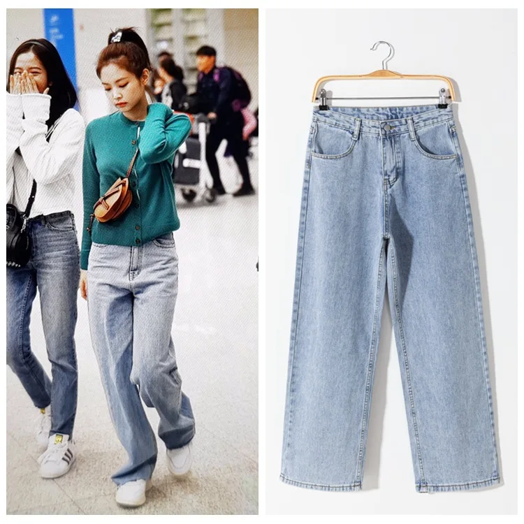 Kpop Celebrite Coreenne Nouvelle Taille Haute Femmes Denim Jambe Large Jean Bleu Clair Pantalon Ample Dames Automne Mode Pantalon Droit Aliexpress