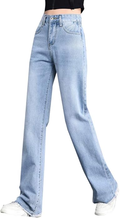 Jeans Femmes Casual Taille Elastique Taille Haute Temperament Pantalon Large Jambe Lache Jeans Droites Amazon Fr Vetements Et Accessoires