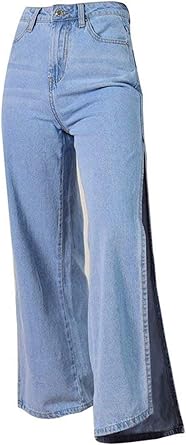 Pantalon Large Pour Femmes Taille Haute Fourche Ouverte Pantalon Slim En Simple Jean Bouton D Exterieur Jambe Large Denim Style Amazon Fr Vetements Et Accessoires