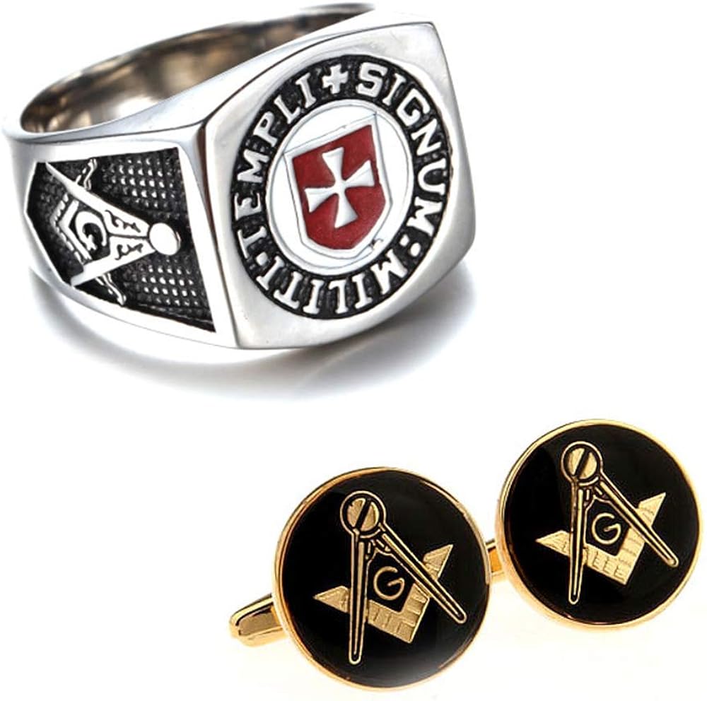 Franc Macon Une Bague Chevaliere De Lordre Du Templier Avec Croix De Malte Et Une Paire De Boutons De Manchette Argente Boutons De Manchette Bijoux