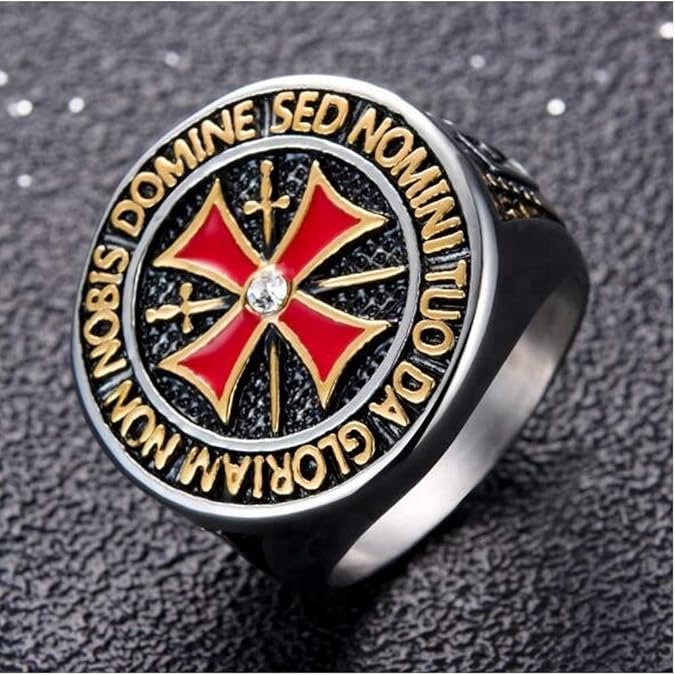 Crintiff Non Nobis Croix De Malte Bague Templier Pour Homme Sed Nomini Tuo Da Gloriam Le Serment Des Templiers Non Nobis Domine Homme Bagues