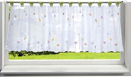 Bailey Jo 1pc Rideau Voilage Brise Bise Broderie Fleur Vert Passementerie Hxl 45x1cm Rideaux Courts Passe Tringle Decoration De Fenetre Chambre Salle De Bain Cafe Cuisine Maison B074scbrng