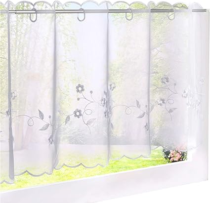 Bailey Jo 1pc Rideau Voilage Brise Bise Broderie Fleur Blanc Avec Passementerie Hxl 30x90cm Rideaux Courts Passe Tringle Decoration De Fenetre Chambre Salle De Bain Cafe Cuisine Maison Decoration De La Maison