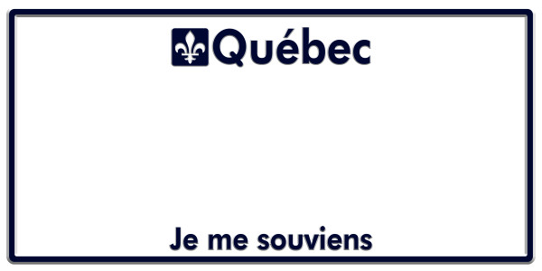 Plaque D Immatriculation Blanche Retro Reflechissante Quebec Je Me Souviens Format 304x152 Mm Avec Bordure Peinte Et Textes Emboutis Delai 3 Semaines Fabriquee Sur Commande