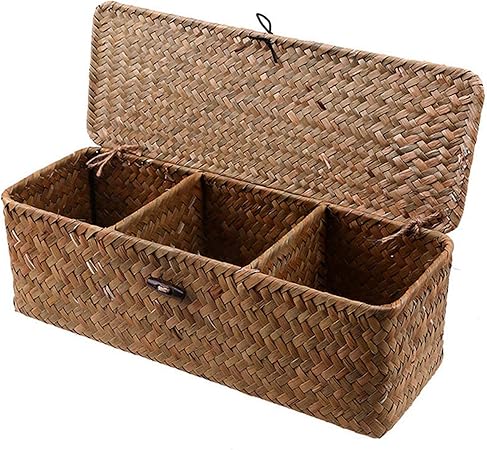 Dudifeng Boite De Rangement A 3 Grilles Avec Housse Vintage Pour Bijoux Et Montres De Bureau Paille Et The Fait Main En Rotin Jaune Taille Unique Amazon Fr Cuisine Maison