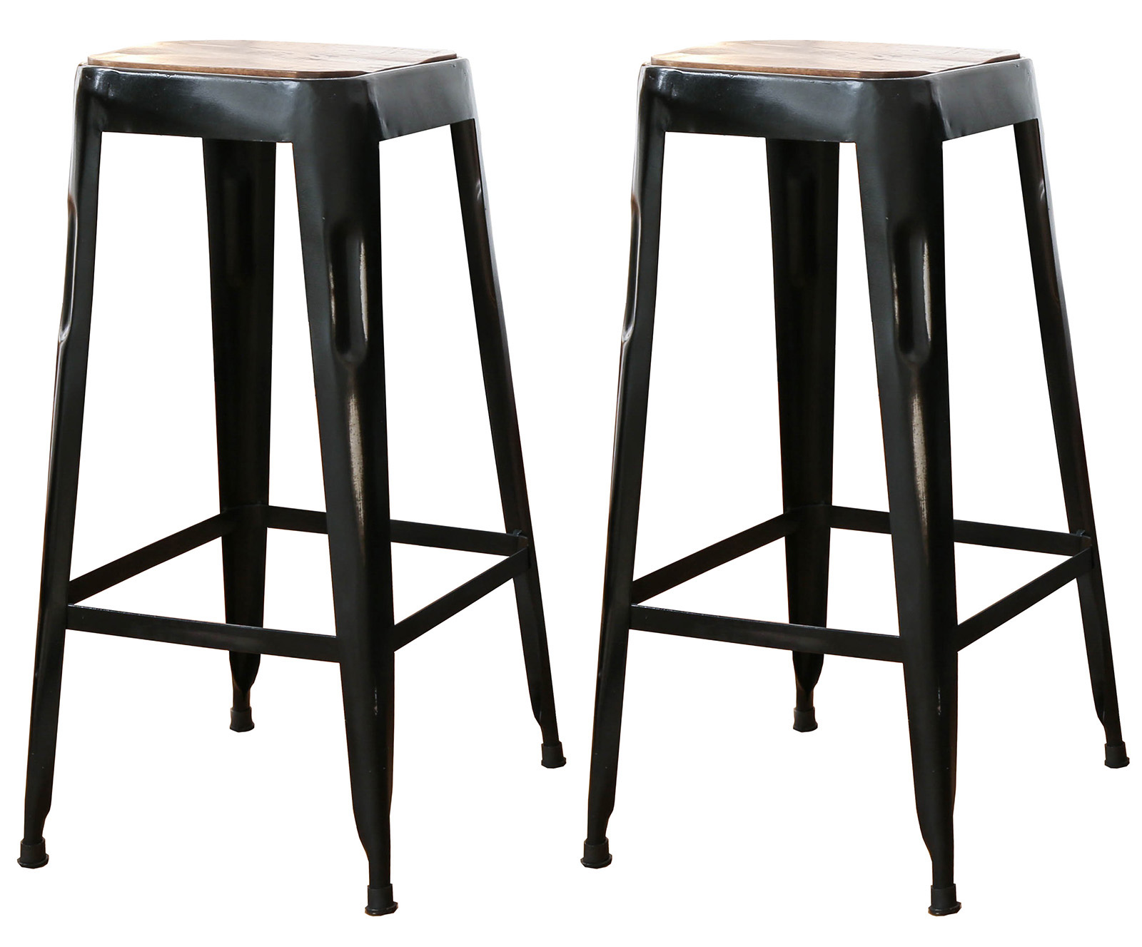 Tabourets De Bar Empilables En Metal Noir Et En Bois H75 Cm Lot De 2 Igla Vente De Miliboo Conforama