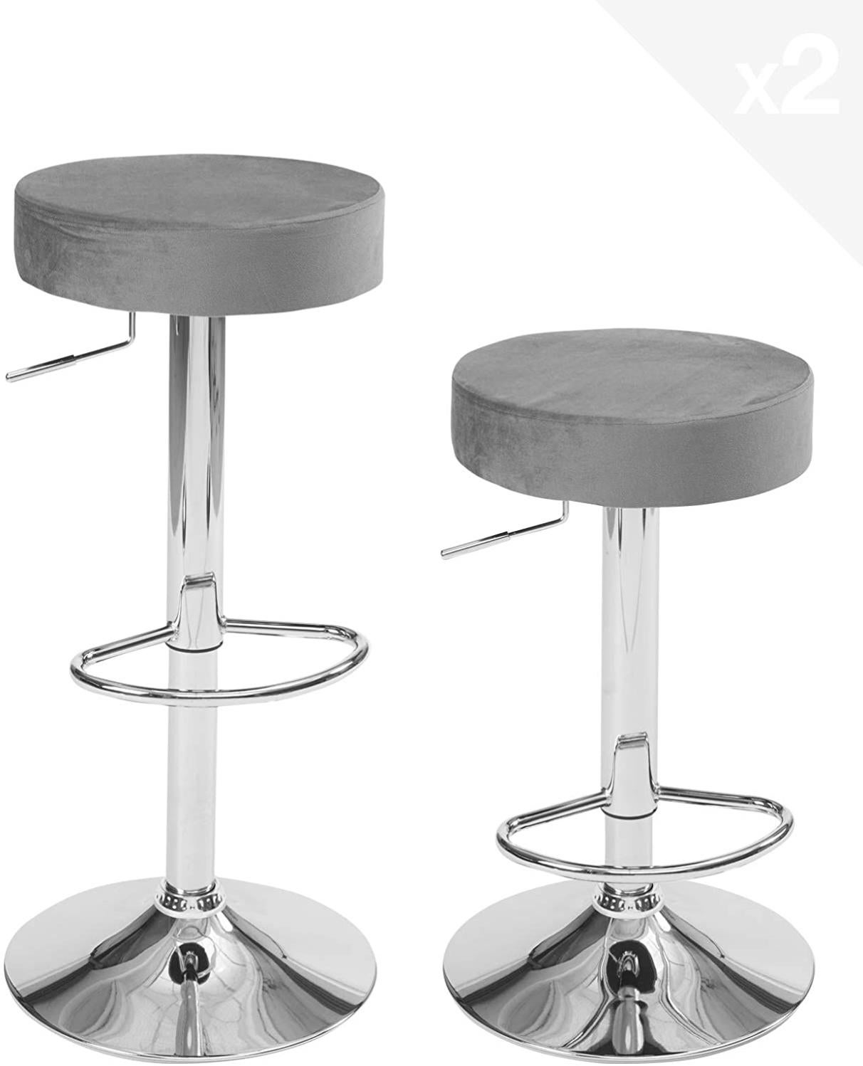 Tabouret De Bar Rond Reglable Pivotant Yo Velours Gris Lot De 2 Leroy Merlin