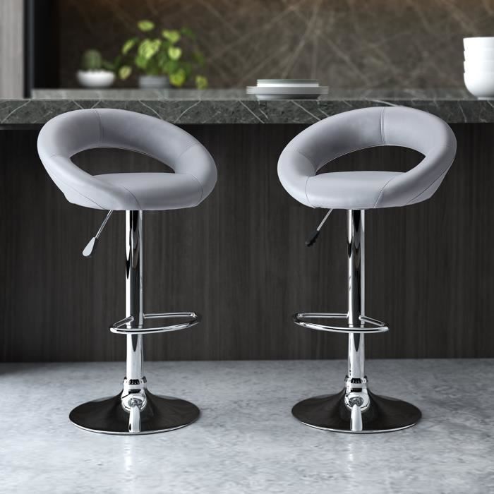 Tabourets De Bar Shanghai Dossier Assisse En Similicuir Hauteur Reglable Barre Repose Pieds Chromes Rotatif A 360 Degrees Bar Achat Prix Fnac