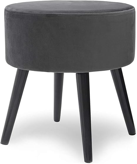 Suhu Pouf Tabouret Velours Repose Pied Rond De Salon Design Chaise Moderne Siege Vintage Deco Repose Pieds En Bois Gris Salon Poufs Et Repose Pieds