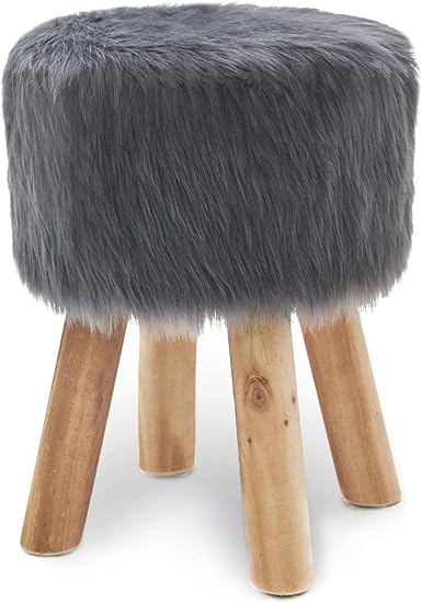 Ommda Tabouret Fourrure Poufs Et Repose Pieds Repose Pied De Salon Design Rond Chaise Moderne Siege Deco Repose Pieds En Bois Gris 30x33cm Poufs Et Repose Pieds