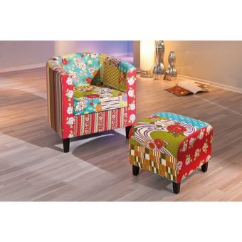 Pouf Fauteuil D Appoint Design Confortable Meuble De Salon Multicolore Patchwork Achat Prix Fnac