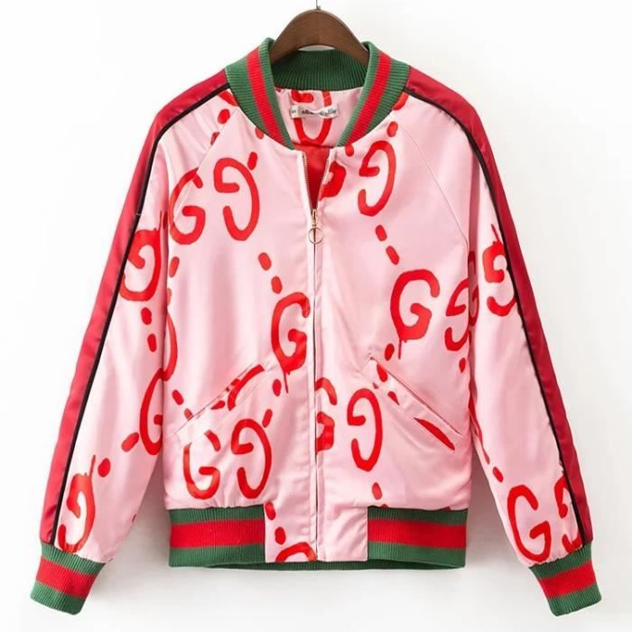 Bomber Jacket Femme Chic Veste Blouson Aviateur Base Ball Imprimes Manche Longue Grande Taille Rose Vogue Automne Hiver Rose Achat Vente Blouson Cdiscount