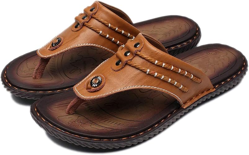 Chaussons De Plage En Cuir De Vachette Pour Homme Tongs Tendance Avec Semelle Souple Respirant Faciles A Assortir Chaussures D Ete Pour Homme Marron Marron 42 Eu Amazon Fr Chaussures Et Sacs