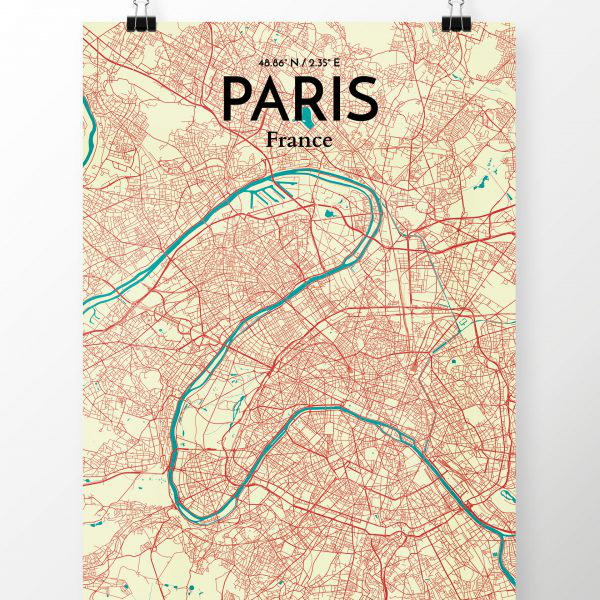 Paris City Poster 2 City Map Poster Print Vintage Maps And Prints