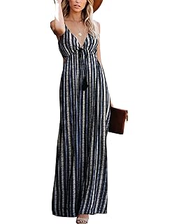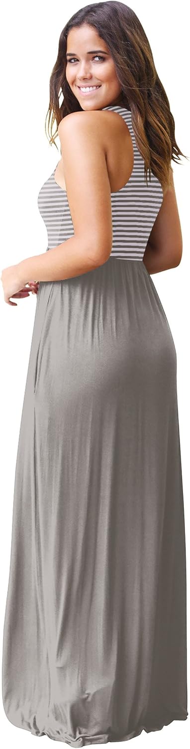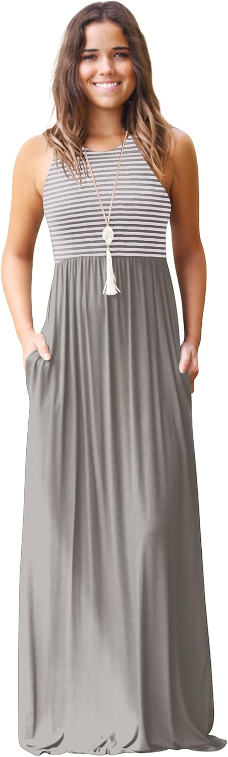 Robe Longue Femme Ete Raye Taille Haute Maxi Robe Stripe Longue Plage Vacances Sundress Sans Manches Casual Avec Poches Robes Vetements