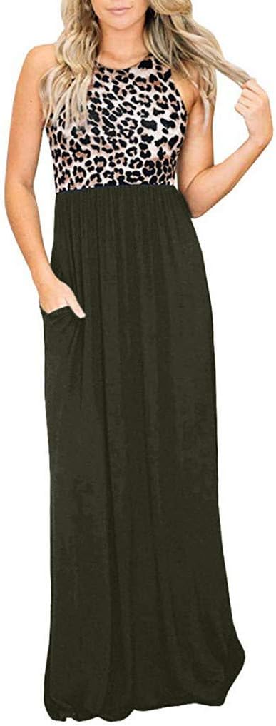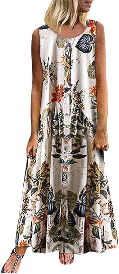 Bequemer Laden Robe Longue Femme Sans Manches Ete Racerback Loose Uni Maxi Robe Casual Robe De
