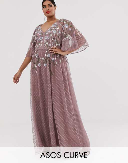 Asos Design Curve Robe Longue A Manches Evasees Avec Broderies Florales D Ete Asos