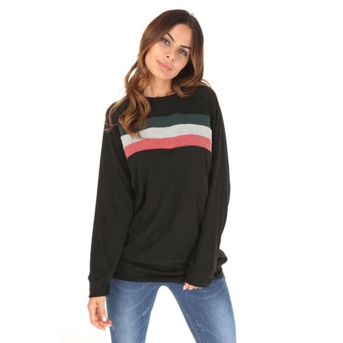 Pull Femme Col Rond Manches Longues Automne Hiver Casual Pullover Couleur Contraste Noir Achat Vente Pull Soldes Sur Cdiscount Des Le Janvier Cdiscount