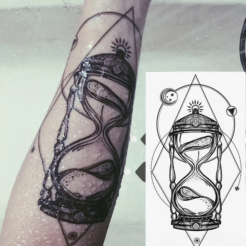 Tatouage Temporaire Temporaire Pour Henne 1 Piece Bras En Sablier Autocollant Etanche Noir Et Blanc Style Mehndi Aliexpress