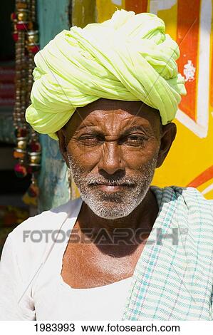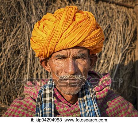 Portrait De Rajasthani Homme A A Jaune Turban Pushkar Rajasthan Inde Asie Banque De Photo Iblkip Fotosearch