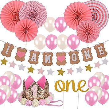Tolyneil Ensemble De Decorations Pour Bebe Fille Motif Princess Pink Theme Kit 1 An Tiara Crown Chapeau Cake Topper Ballons Bannier Plus D Accessoires De Decoration Amazon Fr Cuisine Maison