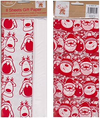 Pole Nord De Noel Cellophane Et Papier De Soie Rouge Blanc Adorable Personnage 8 Feuille Amazon Fr Cuisine Maison