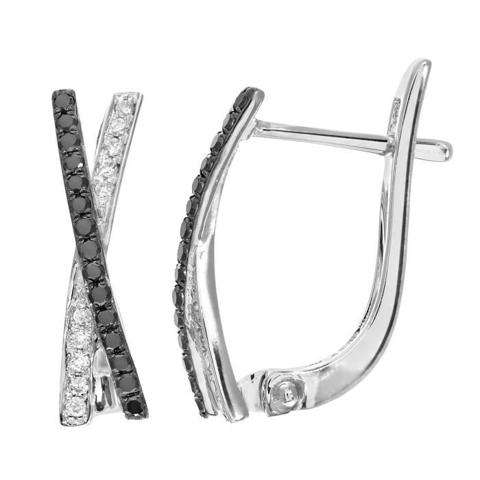 Boucles D Oreilles Anneaux Entrelaces En Or Blanc 375 00 Et Sertis De Diamants Noirs Et Blancs Tousmesbijoux Pas Cher A Prix Auchan