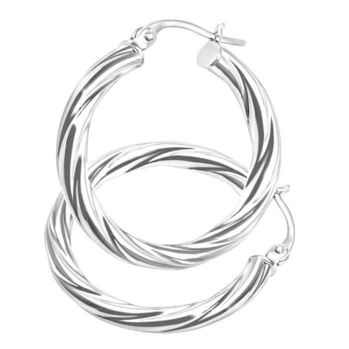 Boucles D Oreilles Creoles Carador Tube Oval Torsade En Or Blanc 750 000