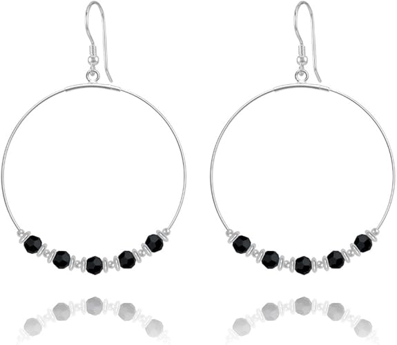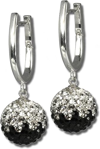 Silberdream Gso004 Boucles D Oreilles Creoles Scintillantes Avec Cristaux Swarovski Blanc Noir Silberdream Amazon Fr Bijoux